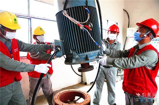 原200千伏安的變壓器被吊下配變臺架,新調來的315千伏安的變壓器平穩地落座在配變臺架上……通過近4個小時的安裝、調試,接通10千伏千畝湖支線等一系列的緊張作業。19時02分,2臺先期安裝好的55千瓦的水泵成功發起,兩股水流沖出千畝湖,流向遠方。