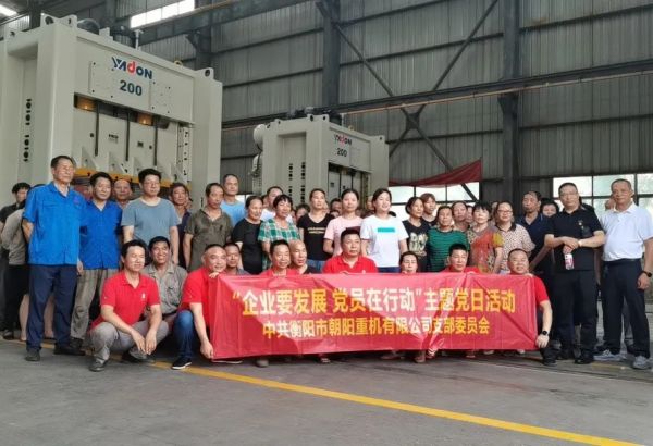 為深入貫徹習近平總書記提出的“學思想、強黨性、重實踐、建新功”總要求,朝陽集團黨支部全體黨員下車間開展“企業(yè)要發(fā)展,黨員在行動”主題黨日活動,公司全體員工參會。